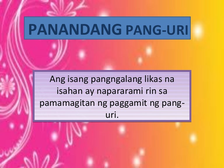Pananda - ito ay nagpapakilala o nagsisilbing tanda ng gamit na pambalarila ng isang salita sa loob ng pangungusapHalimbawa ng mga salitang panandaAng Ang mga -.