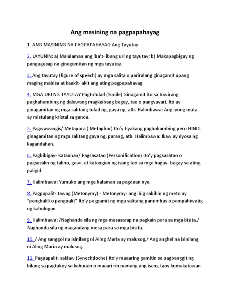 Ang Masining Na Pagpapahayag Pdf