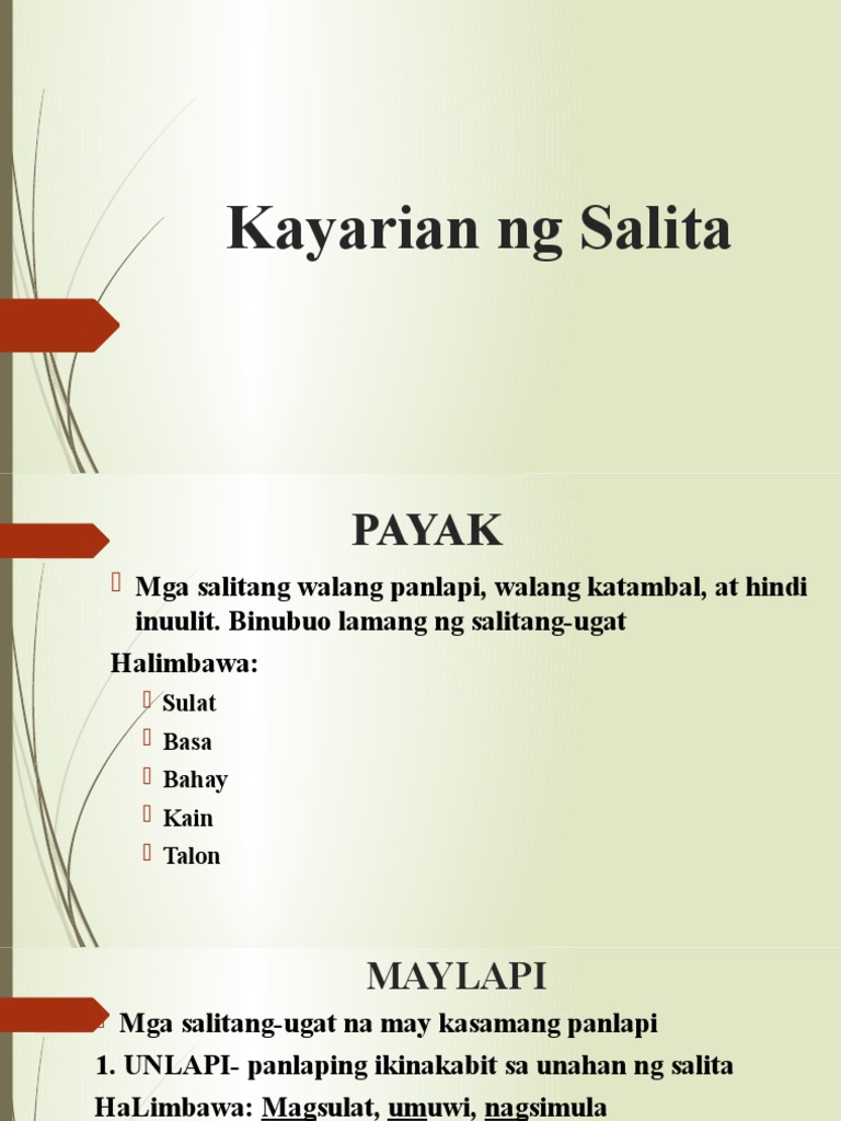 Payak ang salita ay binubuo lamang ng salitang-ugat. The English-Filipino dictionary was an invaluable tool for me. Gitlapi ang gitlapi ay matatagpuan sa gitna.